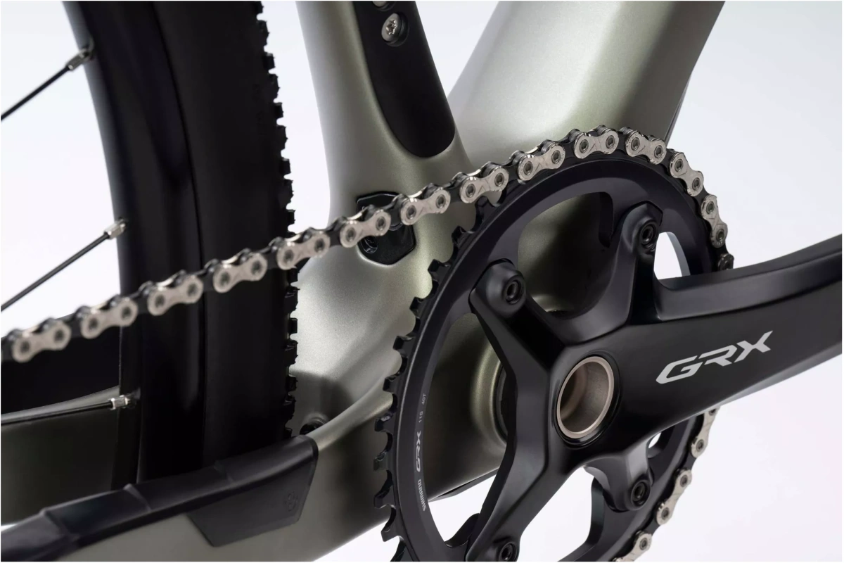 Shimano GRX -voimansiirto tarjoaa luotettavaa suorituskykyä: GRX RD-RX822 -takavaihtaja, 12-vaihteinen SLX CS-M7100 -kasetti (10-51T) ja GRX RX610 -kampisarja (40T) varmistavat laajan vaihdealueen ja tarkan vaihteenvaihdon kaikissa maastoissa. Shimano RX410 -levyjarrut (160 mm) ja BL-RX610 -jarruvivut tarjoavat tehokasta ja luotettavaa jarrutustehoa kaikissa olosuhteissa.