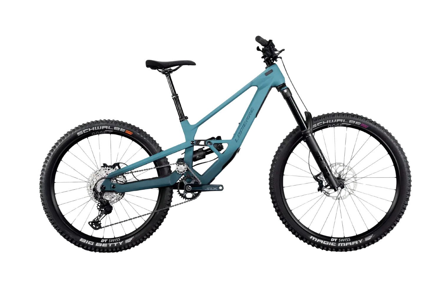 Pyörässä on Schwalben huippurenkaat – Magic Mary Evo edessä ja Big Betty takana – jotka takaavat pidon ja luotettavuuden niin kivikkoisilla alamäillä kuin mutaisilla poluillakin. DT Swiss E1900 Spline -kiekkosarja viimeistelee kokonaisuuden keveydellään ja kestävyydellään.