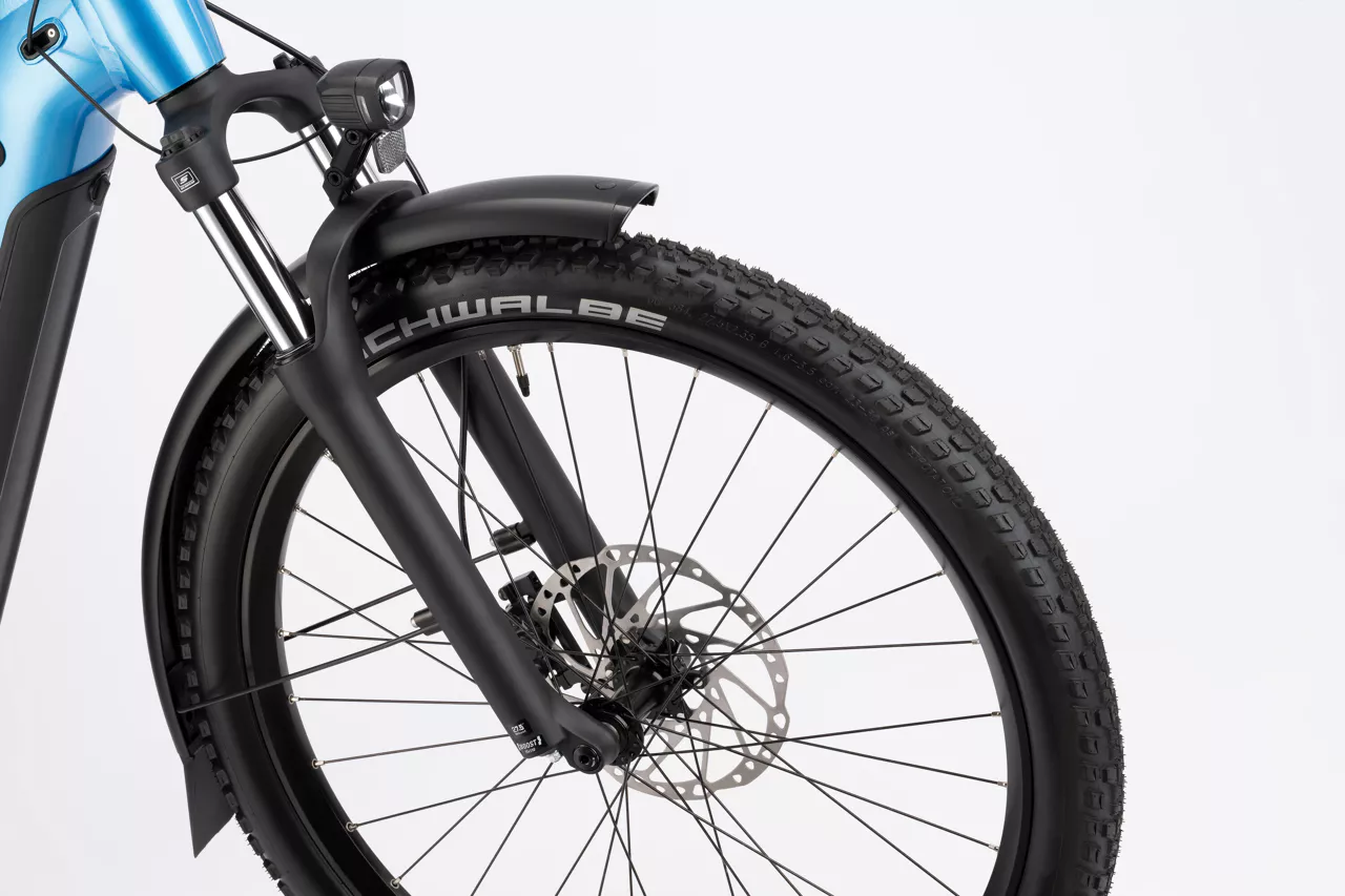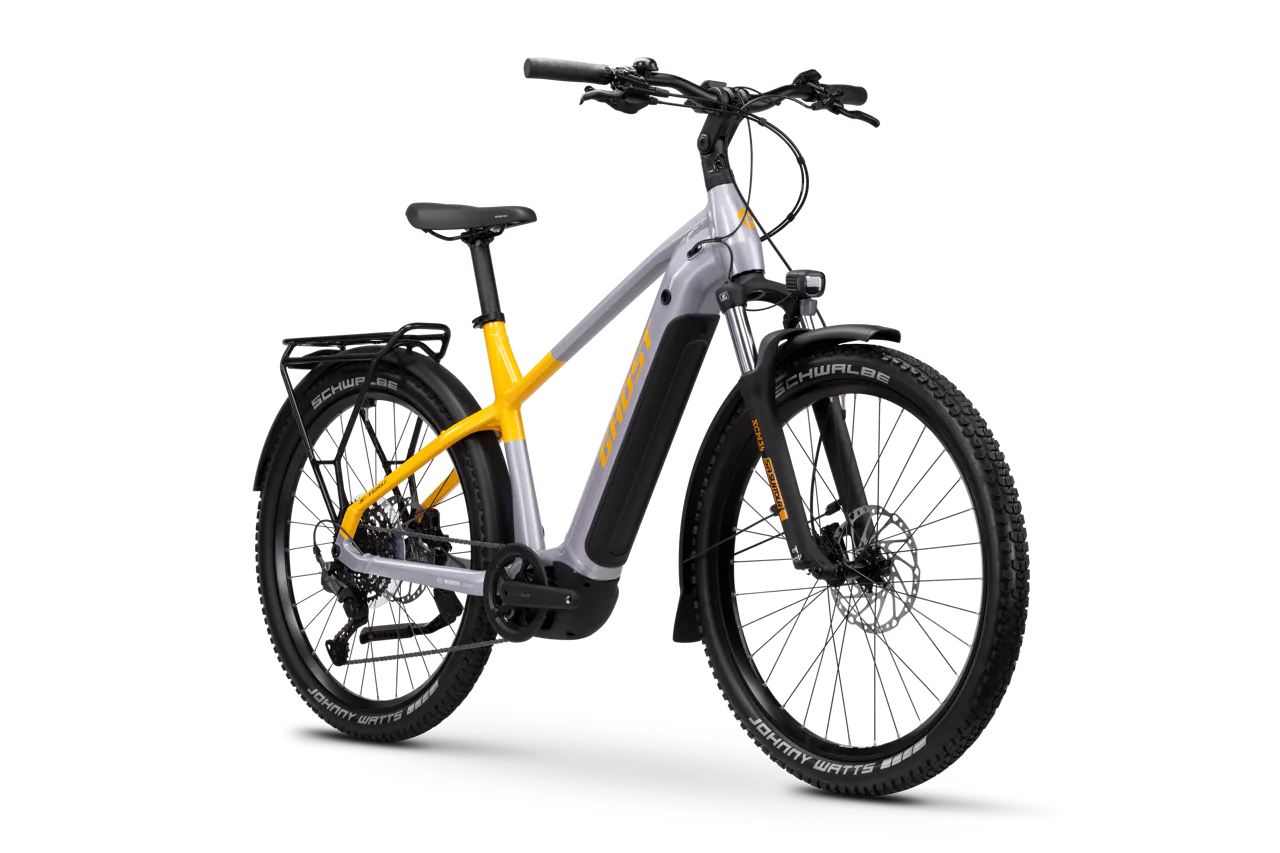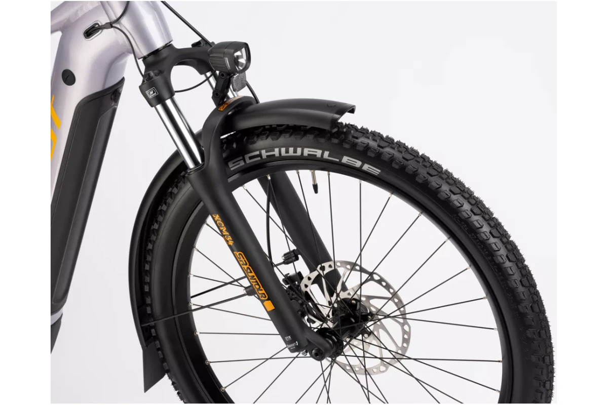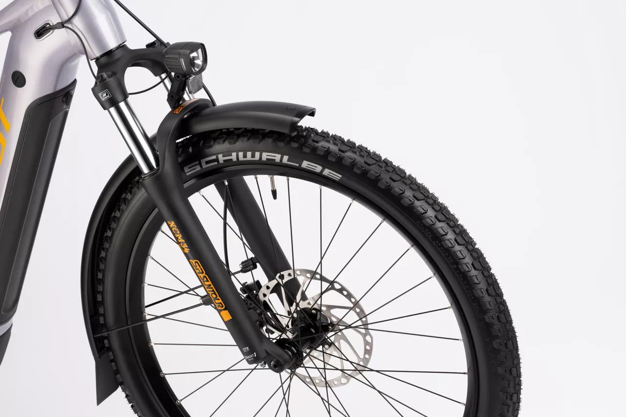 Schwalben leveät Johnny Watts -renkaat pitävät hyvin kiinni sekä asfaltilla että soralla, ja integroitu valaistus tekee ajosta turvallista myös pimeään aikaan. Mukava satula ja säädettävä ohjainkannatin tekevät ajoasennosta rentouttavan pidemmilläkin lenkeillä.