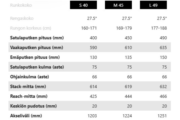 | Etuiskunvaimennin | SR Suntour SF25-Zeron36X-Boost 140 mm |