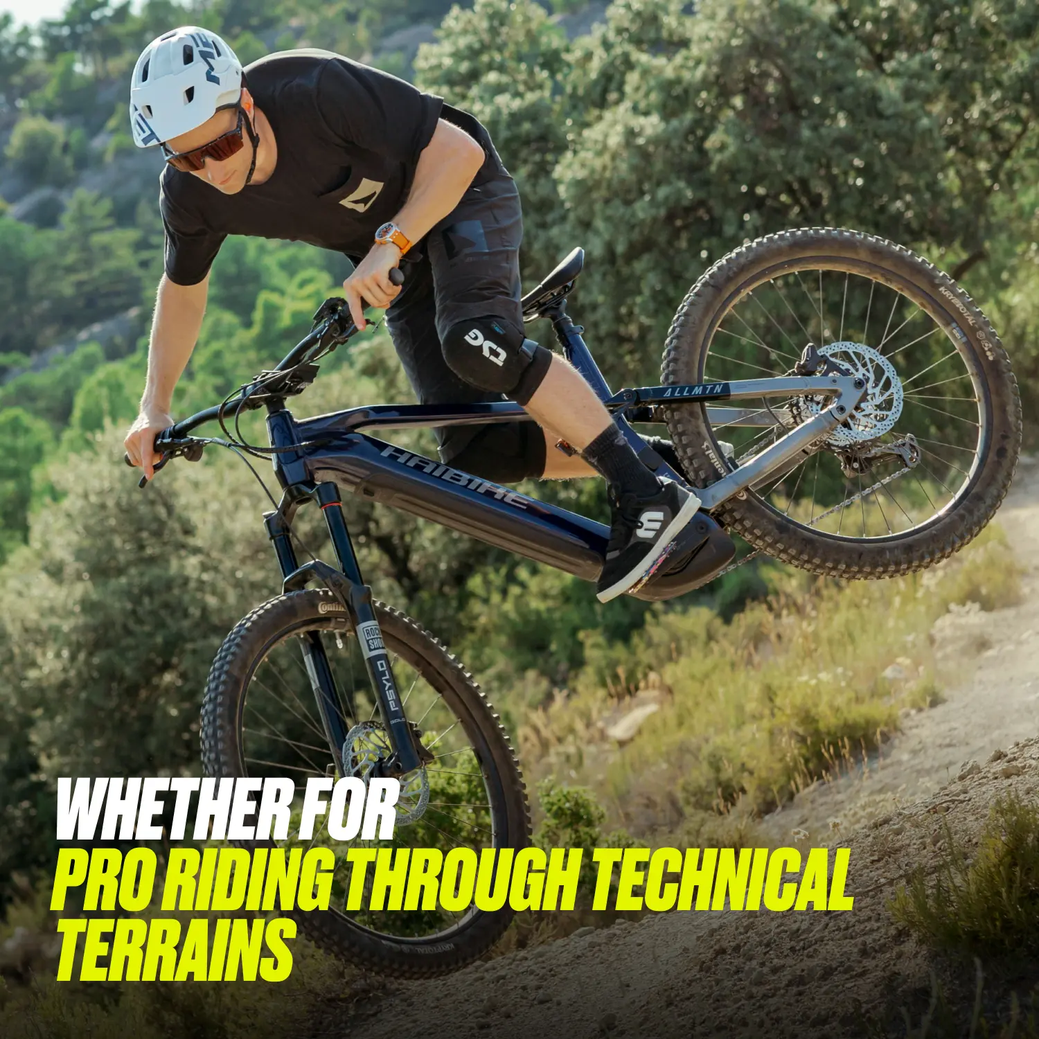 Continental Kryptotal-renkaat (29″ edessä ja 27.5″ takana) takaavat erinomaisen pidon kaikilla alustoilla. Limotec-hissitolppa ja ergonomiset Haibike MTB-kahvat lisäävät ajomukavuutta. Prologo Proxim W400 -satula takaa mukavuuden pitkillekin reiteille. Tämä sähköpyörä yhdistää huipputeknologian, kestävyyden ja ajomukavuuden, tehden siitä täydellisen valinnan vaativiin maastohaasteisiin.