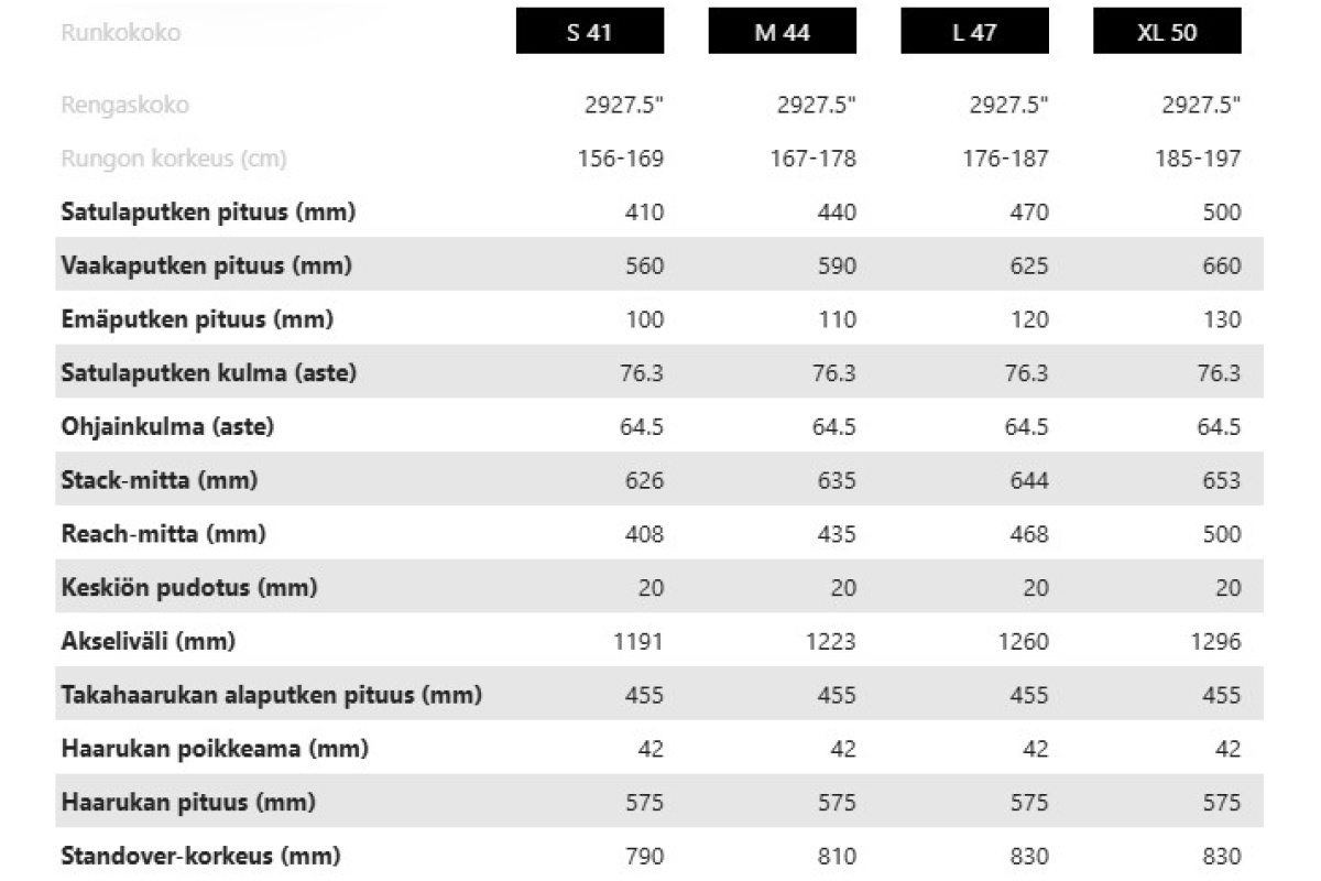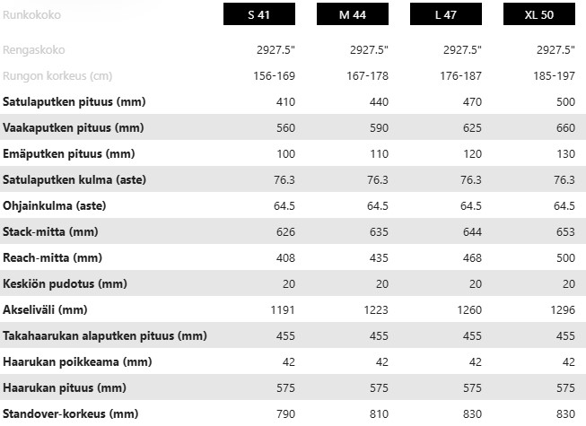 | Renkaat | Maxxis Assegai MaxxTerra/Exo+/TR, 63-622 / Maxxis Minion DHR II, 66-584 |