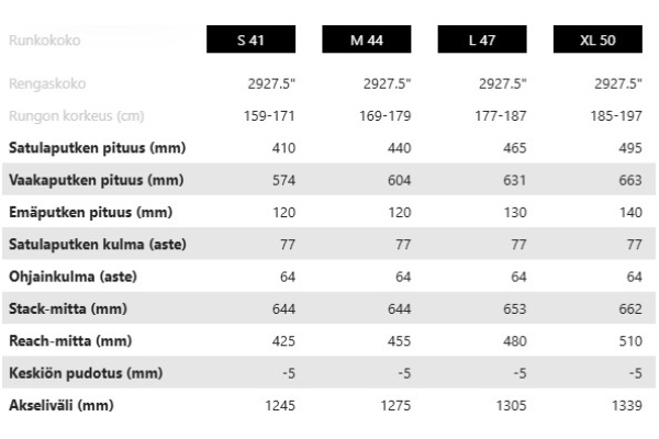 | Kiekot | WTB ST i30 TCS (etu), WTB ST i35 TCS (taka) |