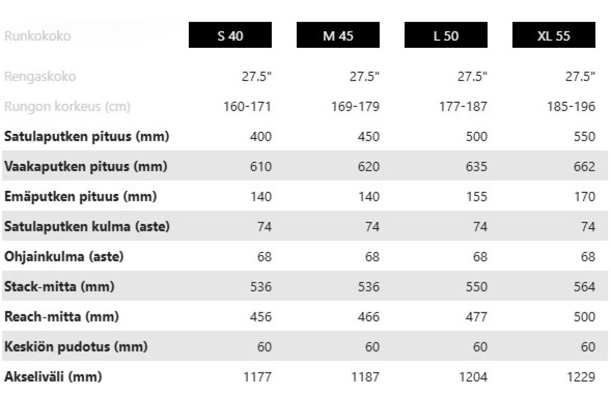Valmistaja myöntää polkupyörien teräs- ja alumiinirungoille 5 vuoden takuun ostopäivästä lukien jäljempänä mainituin takuuehdoin ja etuhaarukoille, maalipinnalle ja muille polkupyörän osille 2 vuoden takuun ostopäivästä lukien. Vuoden lisätakuu tarjoaa 1 vuoden lisätakuun tämän 2 vuoden takuuajan päälle. Ei kasvata runkotakuuta. Lue tarkemmat ehdot täältä