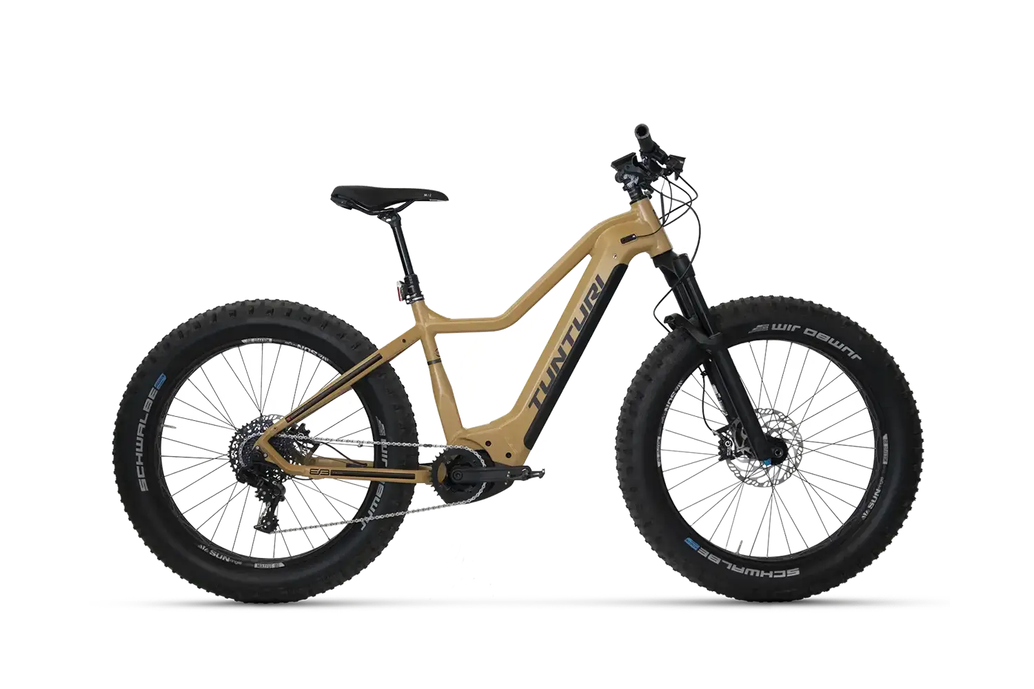 Tunturi eMAX EBF600 2025 Sähköfatbike, joka on suunniteltu äärimmäisiin olosuhteisiin ja tekniseen maastoajoon. Bosch Performance Line CX -moottorin 85 Nm vääntö takaa tasaisen ja tehokkaan avustuksen, ja Bosch PowerTube 750 Wh -akku mahdollistaa pitkät ajomatkat haastavimmissakin olosuhteissa.