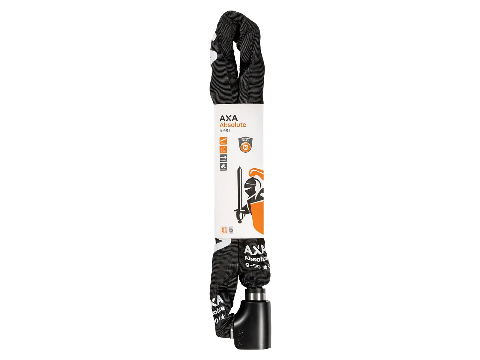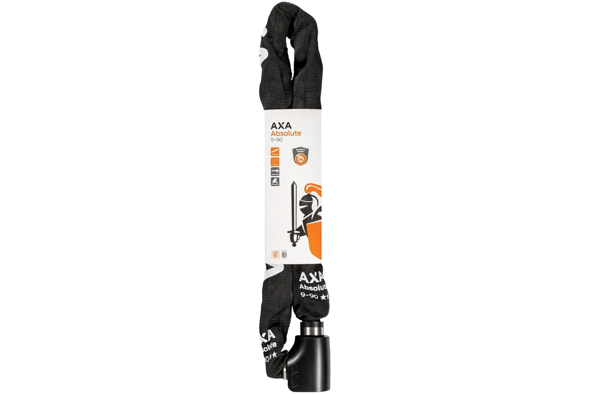 AXA Absolute 9-90 on 90 cm pitkä ja 9 mm paksu ketjulukko, joka tarjoaa erinomaisen suojan erityisesti kalliimmille pyörille ja pitkäaikaiseen pysäköintiin. Turvaluokitus 14/15 ja useita kansainvälisiä hyväksyntöjä.