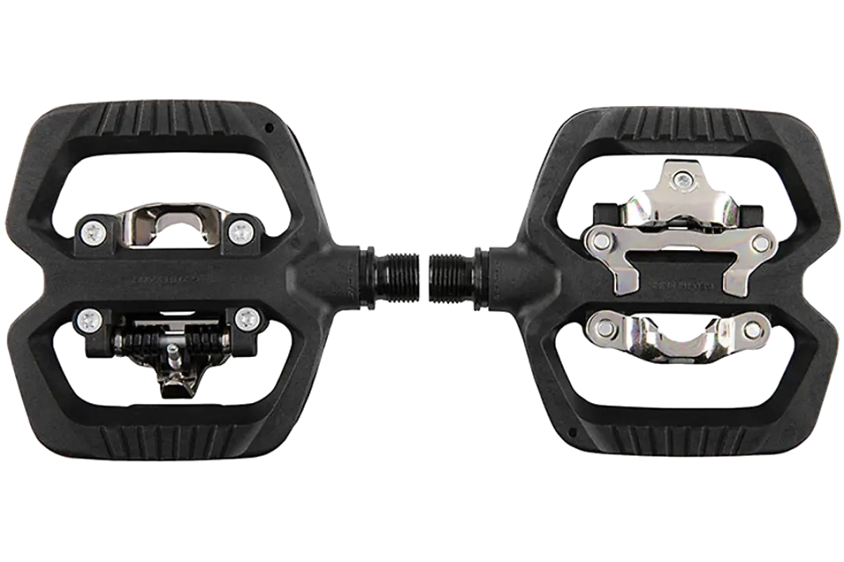 Polkimen komposiittirunko on kevyt mutta kestävä, ja siinä olevat integroidut komposiittinastat parantavat pitoa avopuolella. Lukkopuolella SPD-klossiyhteensopivuus varmistaa turvallisen ja tehokkaan poljinliikkeen pidemmillä matkoilla tai kovemmassa ajossa.