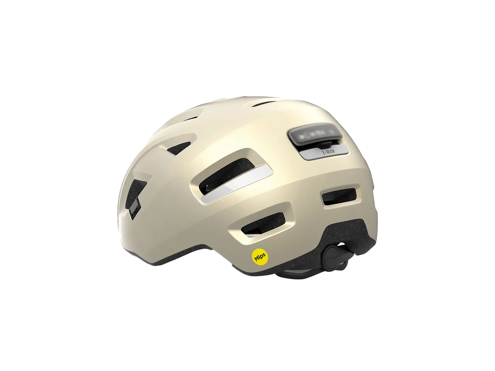 MET E-Mob MIPS -kypärä on suunniteltu urbaanien työmatkapyöräilijöiden tarpeisiin, painottaen turvallisuutta, mukavuutta ja näkyvyyttä.