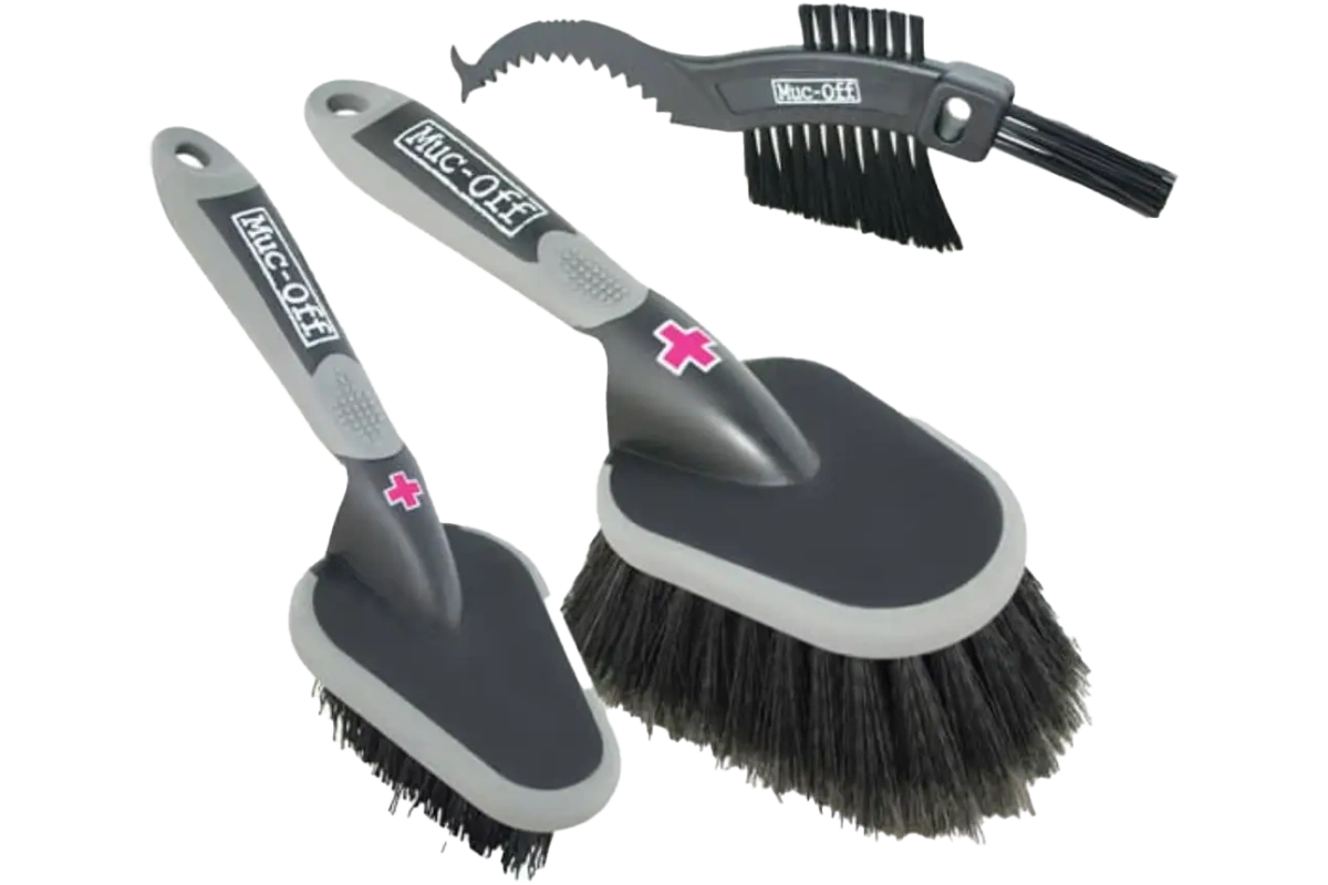 Muc-Off 3x Brush Set on helppo käyttää: kastele harjan harjakset vedellä ja lisää sitten Muc-Off Bike Cleaner -puhdistusainetta. Levitä puhdistusainetta pyörän eri osiin harjojen avulla ja huuhtele sitten vedellä. Harjojen pitkät varret ja ergonominen muotoilu tekevät puhdistamisesta helpompaa ja mukavampaa.