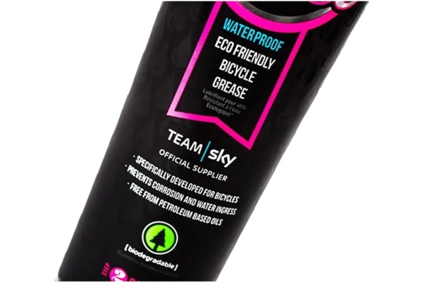 MUC-OFF Bio Grease on biohajoava, erittäin liukas rasva liikkuvien osien voiteluun. Se vähentää kitkaa, parantaa suorituskykyä ja kestää vettä huuhtoutumatta. Erinomainen valinta ympäristötietoiselle pyöräilijälle. Koko: 150 g.