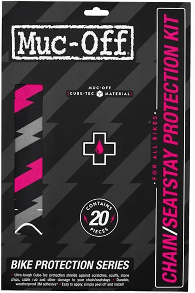 Suunniteltu maastopyörille ja sähkömaastopyörille, uusi patentoitu Muc-Off Cube-Tec materiaali, joka muodostaa suojan ketjusuojasi ympärille. Se on tarpeeksi vahva kestämään rajut iskut ja samalla riittävän joustavaa sopiakseen lähes mihin tahansa runkogeometriaan.