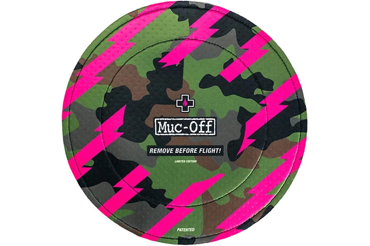 MUC-OFF Disc Brake Covers CAMO -levyjarrusuojat on suunniteltu suojaamaan jarrulevyjä ja -satuloita voiteluaineiden, puhdistusaineiden tai suoja-aineiden ylipurskeilta huollon ja pesun aikana. Näiden suojusten ansiosta voit huoltaa ketjut, rungon tai kiekot ilman, että levyjarrujen teho vaarantuu.