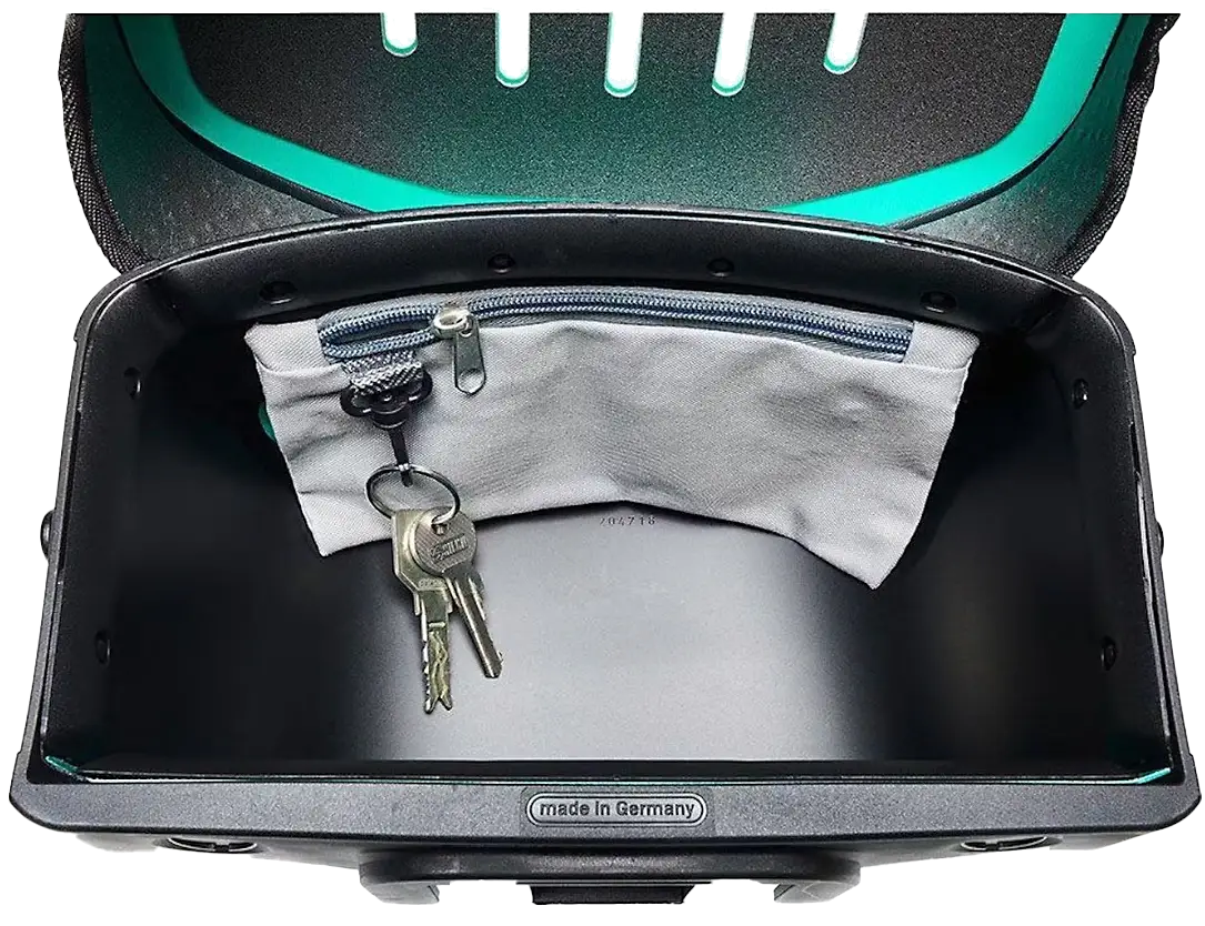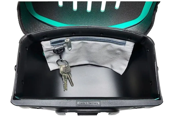 Vakiovarusteisiin kuuluvat olkaremmi, sisätasku ja heijastin lisäävät käyttömukavuutta ja turvallisuutta.