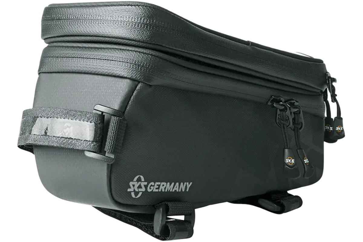 SKS Explorer Smart on vedenpitävä ja kestävä runkolaukku, jossa on irrotettava älypuhelinkotelo. Se tarjoaa käytännöllisen säilytysratkaisun pyöräretkille – älypuhelin pysyy suojassa ja käytettävissä kosketusnäytön läpi, ja mukana kulkevat myös virtapankki, avaimet ja eväät.