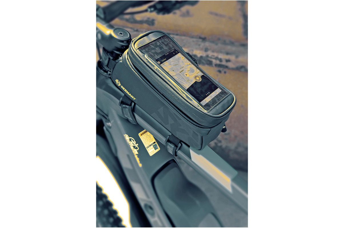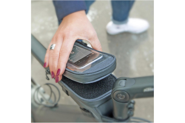 Laukun yläosassa on kosketusnäytölle yhteensopiva älypuhelinkotelo, joka mahdollistaa karttojen, sovellusten tai musiikin käytön ajon aikana. Kotelo on irrotettavissa, ja siinä on aukko kuulokejohtoa tai latausjohtoa varten – täydellinen yhdistelmä vaikka virtapankin kanssa. Tilavassa päälokerossa (1,35 litraa) kulkee helposti mukana esimerkiksi energiaa, monitoimityökalu, sisäkumi tai vaikka lompakko.