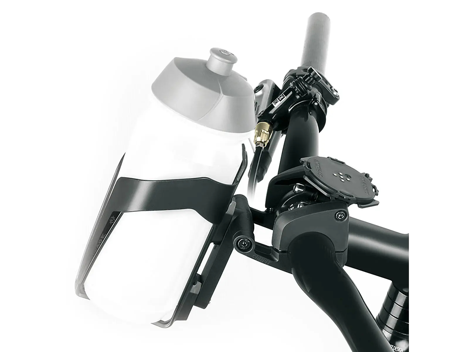 SKS Cage Velo mahdollistaa pullotelineen asentamisen Compit-ohjaustankokiinnikkeeseen. Musta, huomaamaton adapteri tuo juomapullon kätevästi ulottuville ohjaustangon läheisyyteen.
