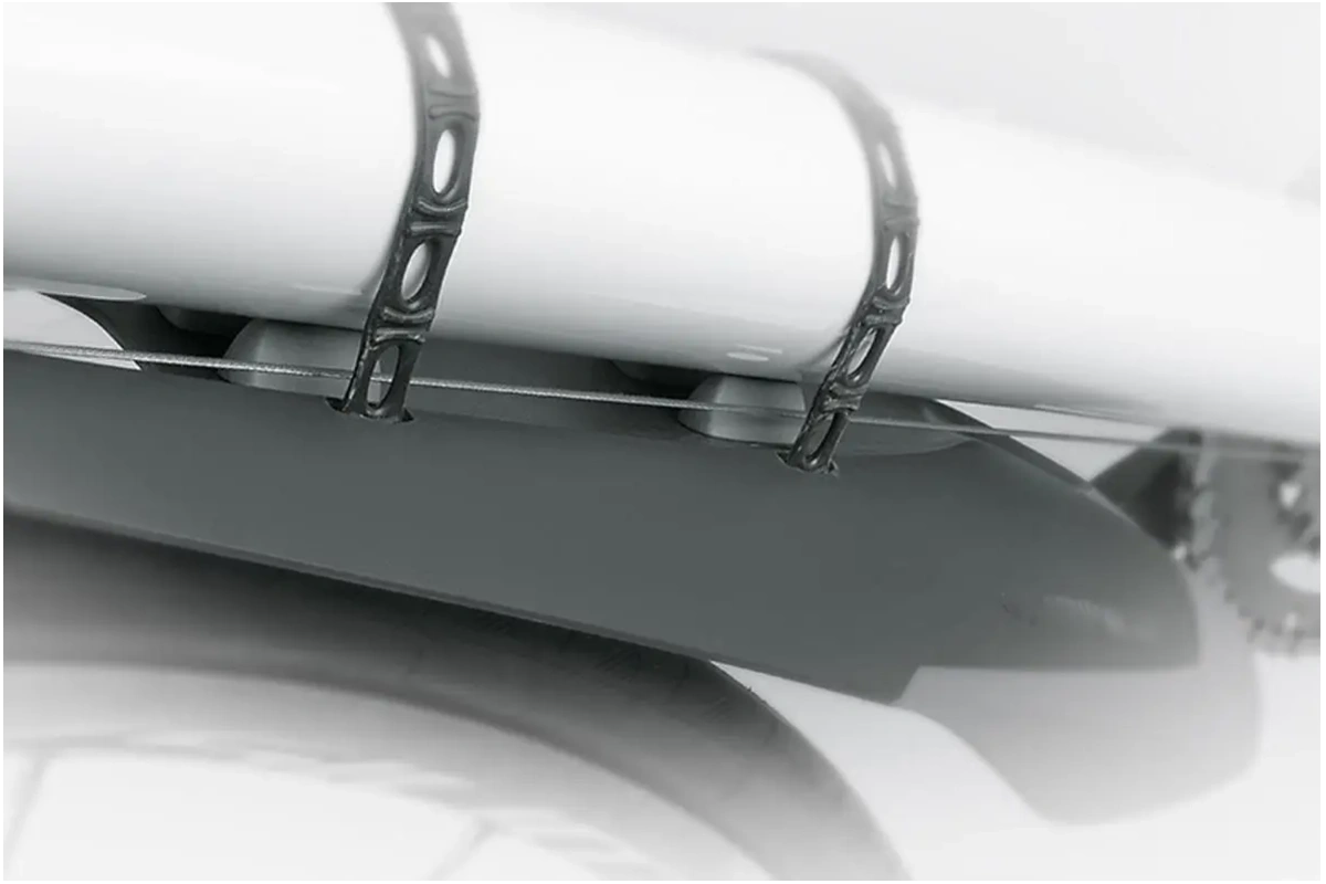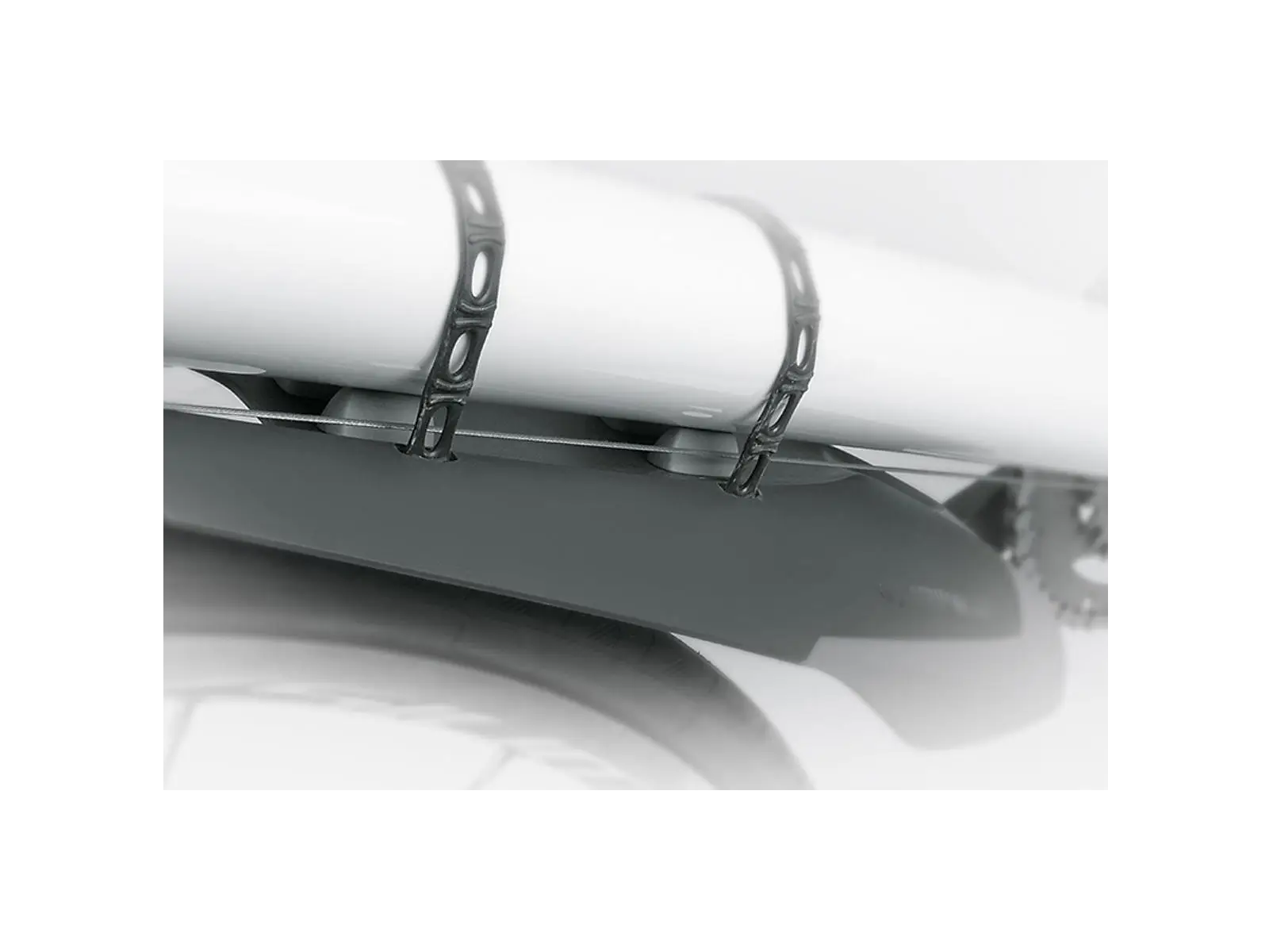 SKS X-Board on downtube-kiinnitteinen etulokasuoja, joka sopii 26”–29” renkaisiin jopa 2,5” leveydelle. Kumihihnakiinnitys, pehmeät kaapelivälikappaleet ja kevyt muovirakenne – paino vain 99 g.