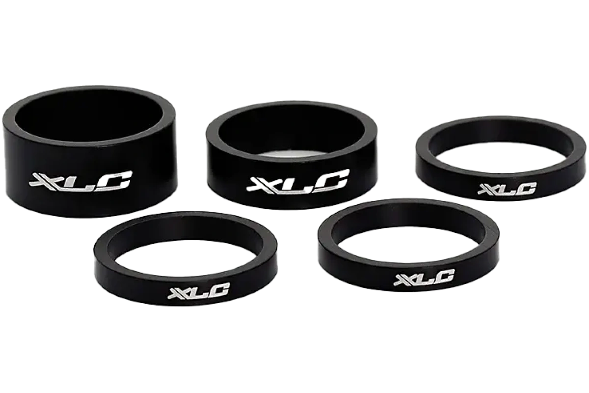 XLC AS-A02 headset spacer -setti sisältää 5 eri korkuista spaceria (5 mm, 10 mm, 15 mm) 1-1/8″ Ohjain-putkelle. Kevyt ja kestävä ratkaisu ohjaustangon säätöön.