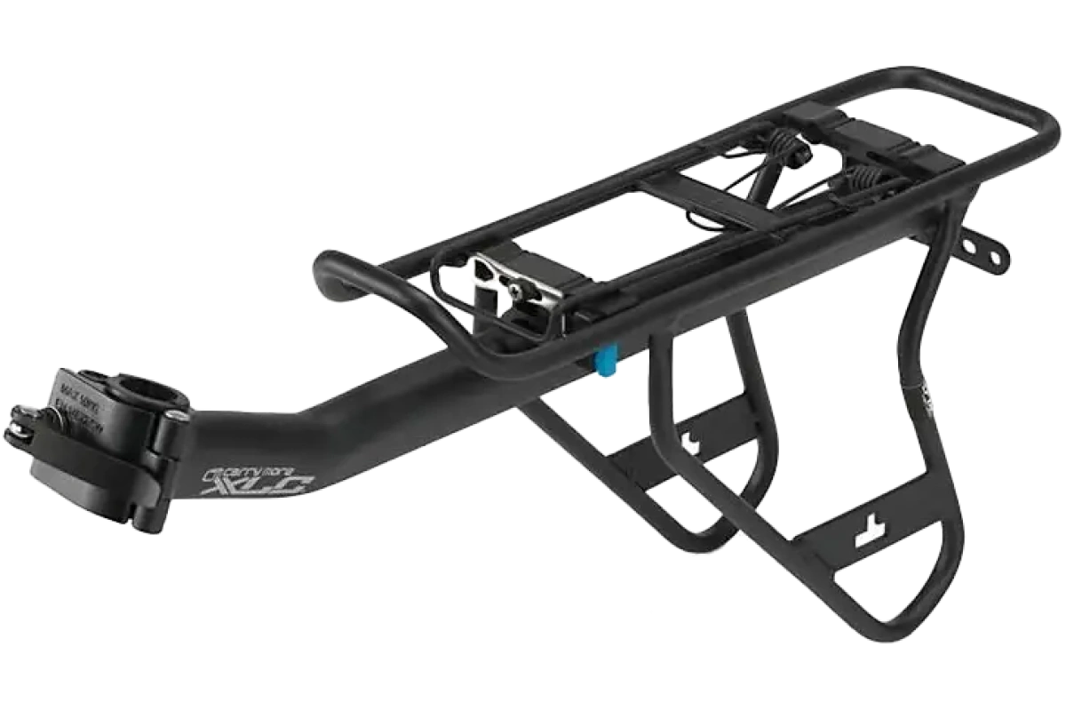 Tämä työkaluvapaasti satulatolppaan kiinnitettävä teline on kevyt ja erittäin kestävä. Se kantaa turvallisesti jopa huomattavan painavia kuormia. Tavaratelineen integroitu jousikiinnitysmekanismi nopeuttaa laukkujen kiinnittämistä, ja erityinen kiinnike takavalolle lisää turvallisuutta.