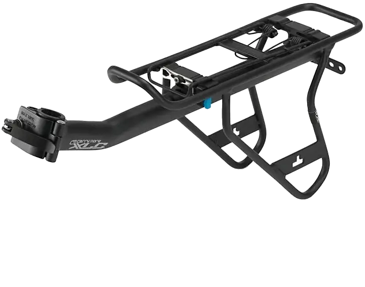 Tämä työkaluvapaasti satulatolppaan kiinnitettävä teline on kevyt ja erittäin kestävä. Se kantaa turvallisesti jopa huomattavan painavia kuormia. Tavaratelineen integroitu jousikiinnitysmekanismi nopeuttaa laukkujen kiinnittämistä, ja erityinen kiinnike takavalolle lisää turvallisuutta.