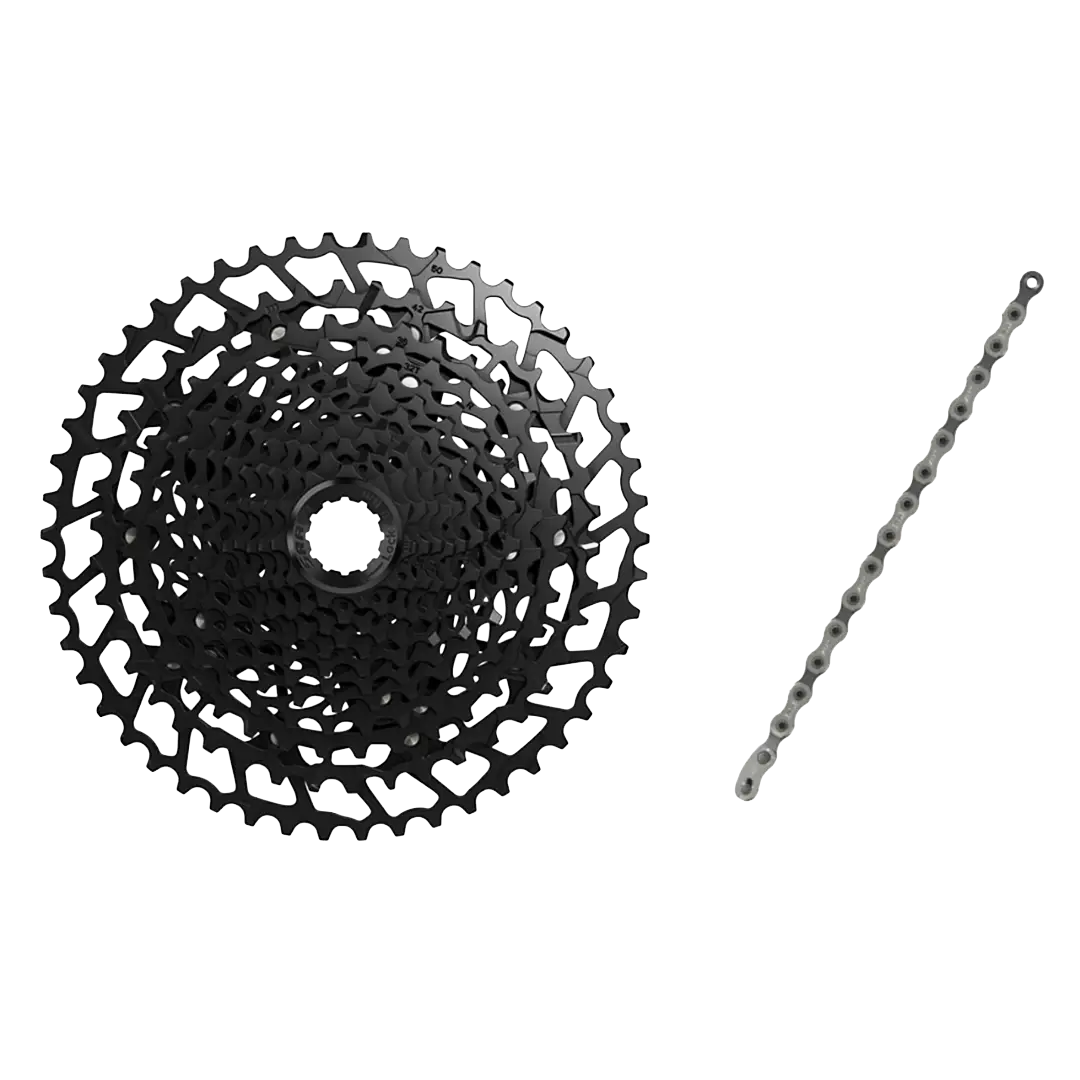 PG-1230-kasetti on valmistettu kestävästä teräksestä ja suunniteltu kestämään kovaa käyttöä, erityisesti e-MTB-ajossa, jossa voimansiirtoon kohdistuu tavallista suurempia voimia. Mukana tuleva SRAM NX 12-vaihteinen ketju varmistaa sujuvan ja hiljaisen vaihteensiirron sekä pitkän käyttöiän.